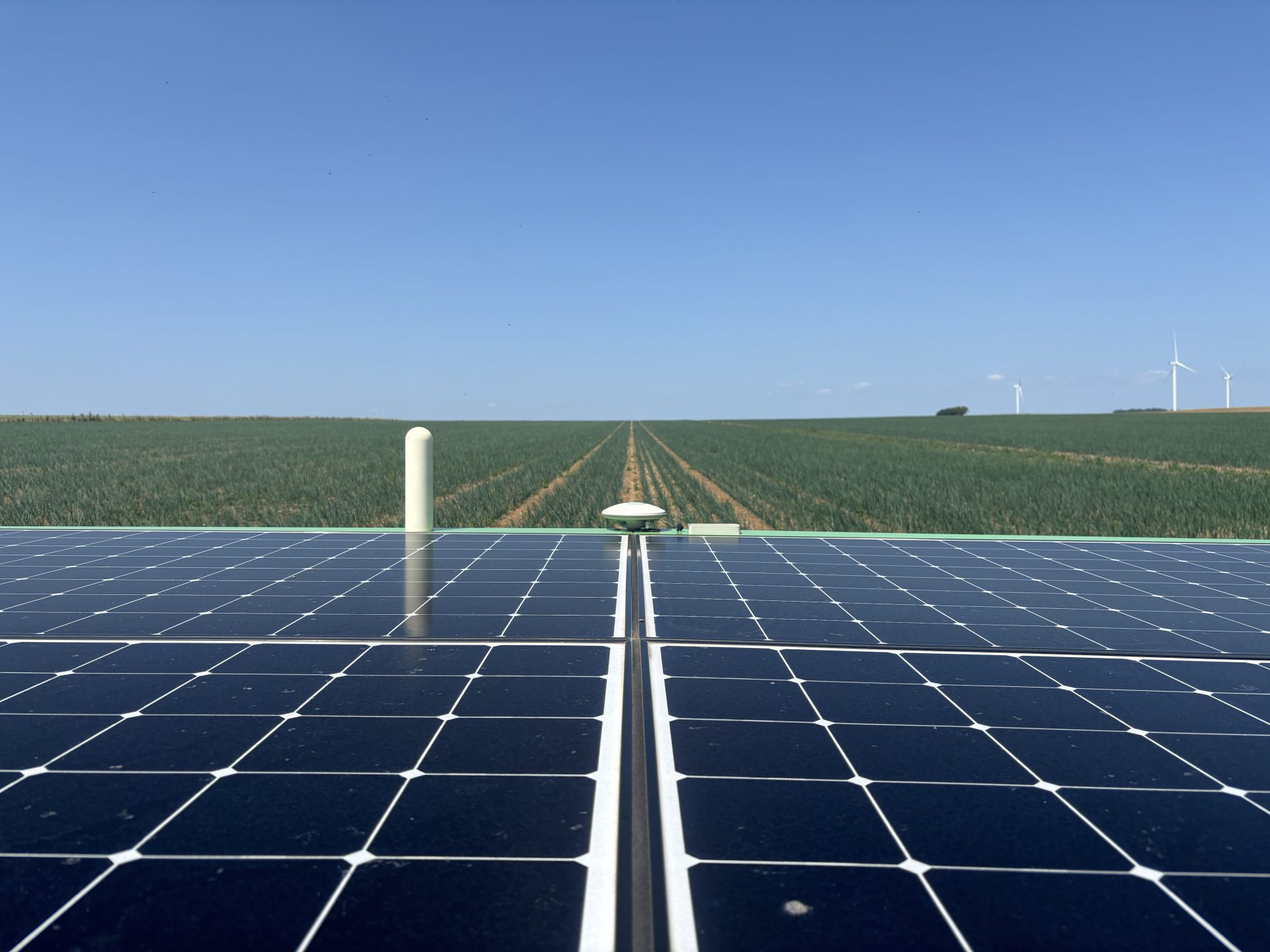 At the start of the season, when sunlight isn’t sufficient to power the robot continuously for the whole day, Philippe swaps the battery each morning. One battery works in the field while the other recharges at the farm.