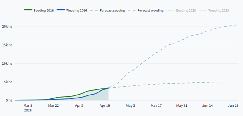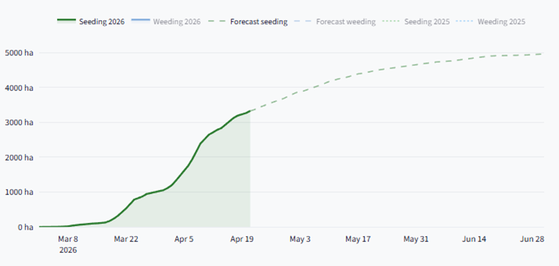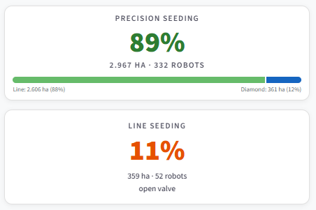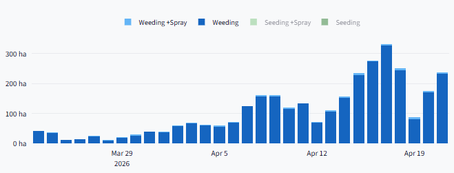 Sæsonen er stadig i gang. Vi forventer, at de fleste af de resterende robotter vil have afsluttet såningen inden udgangen af juni. Samtidig vil flere og flere FD20-robotter udføre mekanisk ukrudtsbekæmpelse og mikrosprøjtning sideløbende. De fleste marker forventes at blive ryddet for ukrudt en gang om ugen og mikrosprøjtet efter behov afhængigt af afgrødetypen.